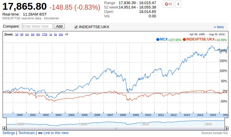 Look at this comparison below over the last 17 years. The FTSE 250 has returned about 250% whereas the FTSE 100 has gained not very much at all.